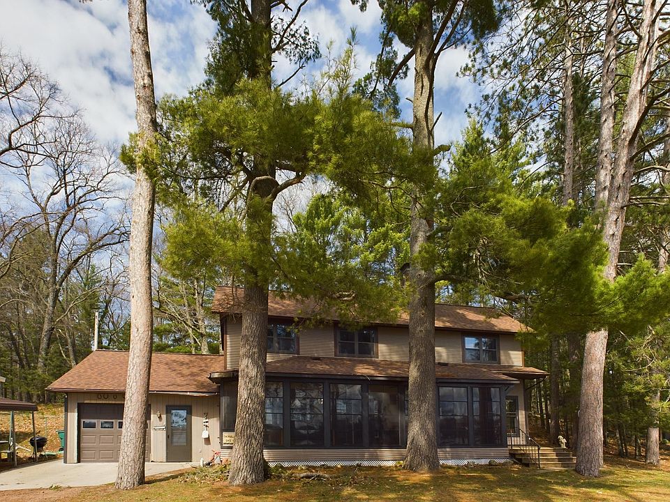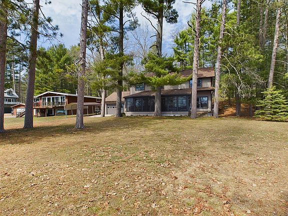 This magnificent property on the 28 lake Eagle River/Three Lakes Chain of Lakes has 300' of frontage on Townline Lake with a 2400 sqft main house along with 2 additional fully finished cabins that would be great for guest and/or investment opportunity via rentals. All 3 dwellings are located on the water with great water views. Main House has 6 bedrooms, 2 full bathrooms, main floor laundry, large dining area, living room with fireplace, a beautiful sunroom with flex vinyl windows to allow for screen porch during those breezy summer nights! Both cabins are fully finished with living room, dining area, kitchen, 2 bedrooms and 1 full bath. Total property is 5.16 Acres which includes additional land behind the main house to use as hunting land, roam the woods, or possibly future building plans to add additional garage space or cabins for more investment opportunities! The property already includes a 30x48 Pole Building directly behind the main house. This is a must see! Call Today!