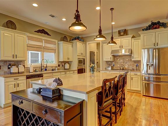 - Kitchen Features: Breakfast Bar, Eat-in Kitchen, Pantry, View to Family Room, Kitchen Island, Solid Surface Counters