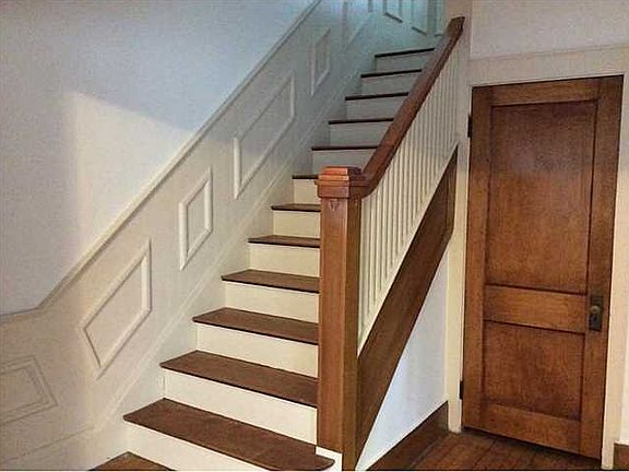 Lovely entry/sitting room w/twin skylights welcomes you home. Wood flrs in large country kitchen have a distressed pottery barn look with the larger planks. Wood burning fp has beautiful art scrolled in the mantel. Water proofed & carpeted bsmt. Upper bath was just updated. Carpeted 3rd level ideal for storage/rec rm. Wood flrs under carpet. 2nd floor 3 season porch. Land behind is in addition to.
