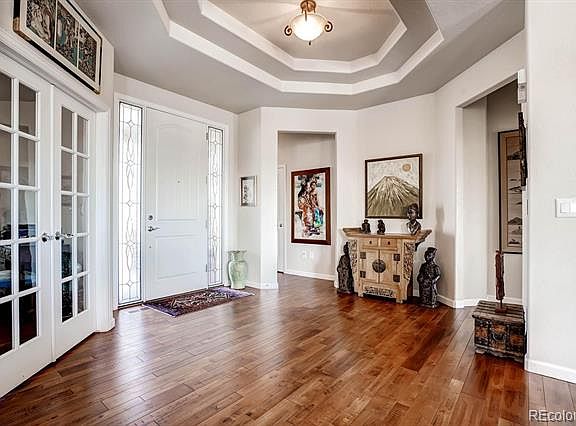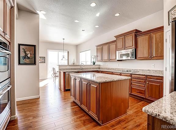 Welcome to 16480 Grays Way Your New Home Boasts a Warm Open Floor Plan of 5200 Sq. Feet. Featuring 4 Bedrooms Plus Main Floor Den, and 5 Bathrooms, a 3-Car Oversized Garage (with Epoxy Floor Finish) and Walkout Basement Backing to Open Space, You Will Be Impressed. Cherry Floors, and Cabinets Flow Through the Main Floors Open Floor Plan with New Paint, Custom Stonework and Wrought Iron Railing. The Large Deck is Ready for Entertaining with Built in Speakers, Great Views of the Open Space and Beautiful Colorado Sunrises. The Professionally Finished Walkout Basement with Structurally Engineered Floor has 2 Bedrooms and 2 Bathrooms, you will have plenty of room for Family and Friends to visit. The Open Floor Plan Is Finished in Knotty Alder Cabinets, Doors and Trim. The Family Room/ Game Room/ Billiards Room/ Media Room is Expansive with a 3-sided Fireplace that will Make the Entire Basement Warm and Cozy. The Wet Bar/ Kitchen is fully Equipped and has Seating space for 10+. There is also a Bonus Room that is equipped to be a 2nd Laundry Room. There is a whole Home Vacuum System, Including the Garage ! The Utility Room has Ample Storage and Built in Shelving. Relax on the Custom Covered Stamped Concrete Patio with More Space to Entertain. A 2-10 HBW Home Warranty is also Included. Anthem Ranch Boasts a 20,000 sq. ft Recreation Center with 2 (indoor and outdoor) Pools, Workout Facility, Indoor Track Meeting Rooms, Tennis and Pickleball, Expansive Parks, Open space and Miles of Trails. There are also over 90 clubs and organized activities.