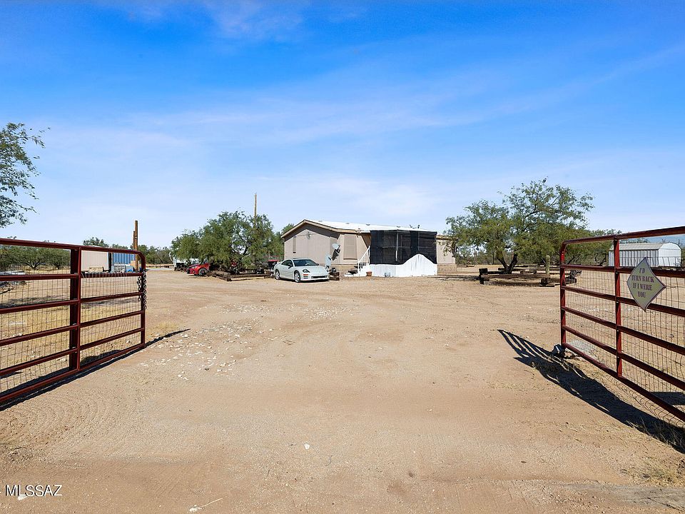 VIEWS. Opportunity to own a piece of heaven with sunset, sunrise and mountain views. Fully fenced and gated 1.15 useable acres. 35x40 concrete slab for another home to be put on. Currently there is a Montana 5th wheel that stays that is attached to water and electricity. Property is ready for a second home with its own electric, water, and a 2nd septic tank. There is ALSO an RV slab with a full RV hookup!!! Can be used for additional income. 3 sheds and 1 cargo container stay on the property. 3 bedrooms,2 bathrooms. Cavco affixed double wide. Newer 3 ton seer AC and heater replaced 2 years ago. Year old flooring in living room, master bedroom and kitchen. No gas was converted to electric in 2022. Close to restaurants, gas stations and Ajo.