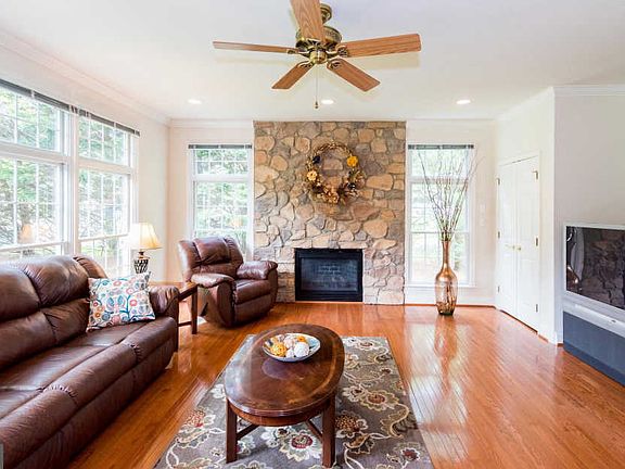 Pristine colonial is set on large tranquil lot with open back yard, lined with mature cypress trees! Gleaming hardwood floors span main level featuring spacious formals with open architecture! Lovely kitchen boasts endless classic white cabinets, open U-shaped layout, breakfast room with built-ins, and workstation! Open concept family room with floor to ceiling windows and stone gas fireplace with blower! Host summer get-togethers on the deck! Owner's suite with 2x walk-in closets and attached bath with corner jetted tub and walk in shower with floor to ceiling ceramic tile surrounds! Additional bedrooms are spacious in size with bright windows! Finished lower level offers bar area and rec room for the ultimate entertainer. Wired for a portable generator. Gutter Helmet gutters.