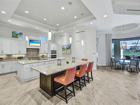 Immediate golf available! Live the serenity and elegance of Talis Park: A west of I-75 Naples 5-star, luxury-designed Norman/Dye golf and tennis resort community. This custom 2016-built contemporary pool/spa home offers 7400+ square feet of luxury indoor and outdoor living including the expansive pool/spa deck, 3-car A/C garage, plus whole-house generator, and private golf and lake views. The elegant foyer reveals a stunning living room with 16-foot ceilings, two dining areas, gourmet chef's kitchen, two islands and wet bar, all offering generous storage and seating. The floor plan flows spaciously from room to room, featuring impact windows and pocket sliders opening to the pool/spa deck with ample seating, outdoor kitchen, fireplace and electric hurricane shades. Experience superb Talis Park dining/entertainment venues, resort/lap pools, tennis, pickleball, bocce, state-of-the-art fitness/wellness/spa, beach shuttle, dog park and exquisite landscaping. Ranked by Golf Digest as one of Florida’s top 20 courses with a total course renovation completed in 2023, Talis Park is one of the nation’s premier golf experiences, symbolizing the rare beauty and quality of the entire community.