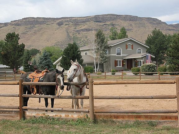 - Horse Property Features: Fenced, Loafing Shed, Outdoor Arena, Tack Room, Paddocks