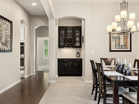 One-of-a-kind, extensively renovated ranch home in Anthem Ranch, Colorado’s premier Active Adult Community! Situated on over 1/3 acre at the end of a cul-de-sac, this stunning property offers exceptional privacy and beautiful landscaping. Enjoy serene outdoor living with an expansive stamped concrete patio, gas fire pit, flagstone patio, mature trees, and lush greenery backing to open space and trails. A renovated covered deck, dry stream, boulders, and hardscaping complete the tranquil exterior. Inside, you'll find over 5,100 finished square feet of high-end updates and entertaining space. The main level features a fully reimagined gourmet kitchen with white perimeter cabinets, contrasting black island, quartz countertops, GE Profile appliances, and a touch-faucet. A spacious great room, formal dining and living areas, and a large study offer elegant functionality. The oversized primary suite includes a tray ceiling, custom walk-in closet, and spa-like five-piece bath. A second large main-floor bedroom and full bath are also beautifully updated. Plantation shutters adorn every window, and there’s a renovated powder room and laundry for convenience. The finished basement offers the ultimate entertaining space with a theater area, game zone, wet bar (complete with fridge, dishwasher, ice machine, and disposal), conforming bedroom, 3/4 bath with steam shower, and over 500 sq ft of unfinished storage. The 3-car garage has insulated doors, Wi-Fi-enabled openers, and epoxy flooring. Additional features include a newer high-efficiency zoned HVAC system, newer water heater, and recent professional exterior paint. Incredible amenities with both indoor and outdoor pools, tennis courts, pickleball courts, fitness center - and more! This meticulously maintained, move-in-ready home is one of Anthem Ranch’s finest—Welcome home!