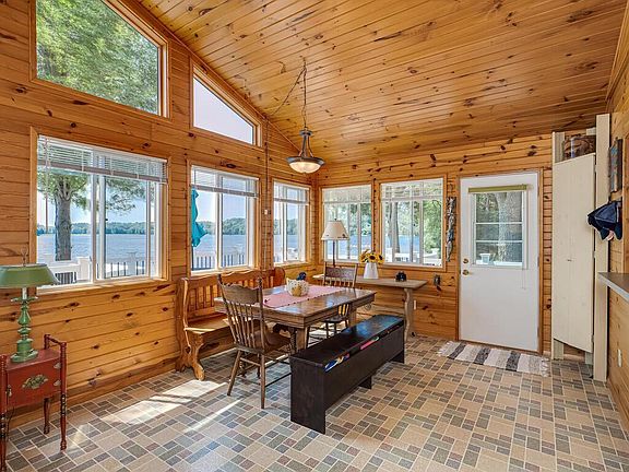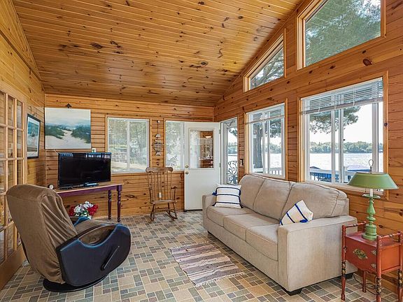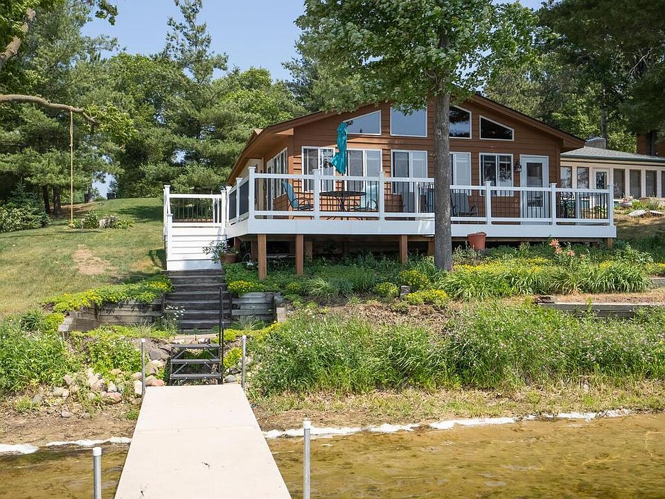 CHECK THIS OUT…. An excellent opportunity awaits on beautiful Ann Lake. Enjoy living the cabin life with all the city living conveniences. This charming seasonal home offers 75 ft of lakeshore and many updated features including a newer septic (2021) and new maintenance free deck (2022). Enjoy the peaceful sounds of the loons while watching the eagles soar above. There are only 53 homesites & the Sand Dunes State Forest is located on the SW side of the lake. Inside features a huge vaulted front porch offering a full wall of windows w/panoramic views of the lake and finished w/T&G woodwork. Glass panel doors welcome you to the cozy living area w/gas fireplace, a full-size kitchen w/all appliances, breakfast bar, 2 BRs, 1 BA, plus stack laundry unit w/new plumbing & wiring. Outside offers multiple storage sheds, beautiful-tiered landscaping lakeside (2021) PLUS an additional lot located across the street w/carport & electric. This is one you won’t want to miss! Dock Included. HURRY!