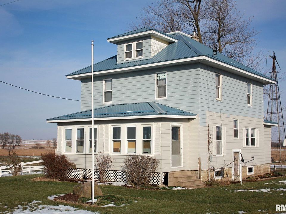 Horses, cattle, hobbies, business, storage... This property features a newer 60x100 building with water, 4+ acres with fenced pastures, located on a hard surface road. The home is freshly painted and carpeted, and has a newer metal roof. Lots of character with wooden columns, original kitchen cupboards, original trim and doors. There are front and rear porches to enjoy your views for miles around and your own slice of the American dream. Easy commute with good roads, 40 minutes to Davenport.