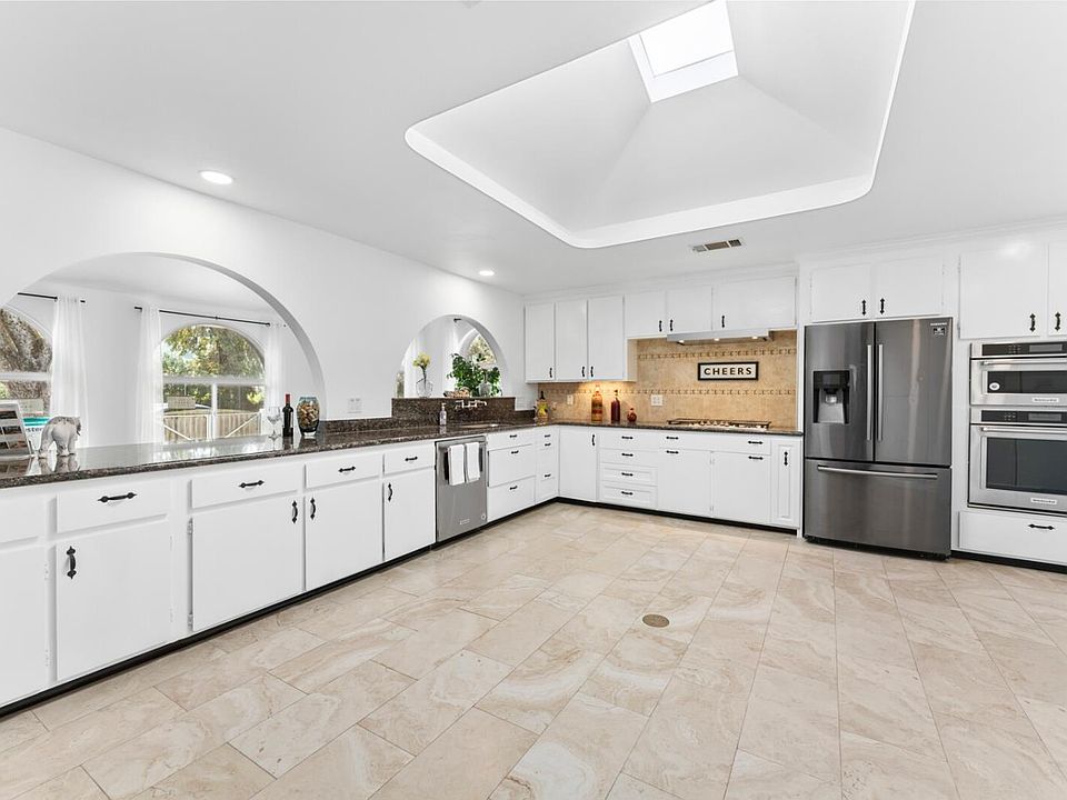 Gated front courtyardIncredible skylightVaulted and arched ceilingsPrivate spa master bathroomOpen entrywayOpen concept floor planBuilt-in ambient lighting