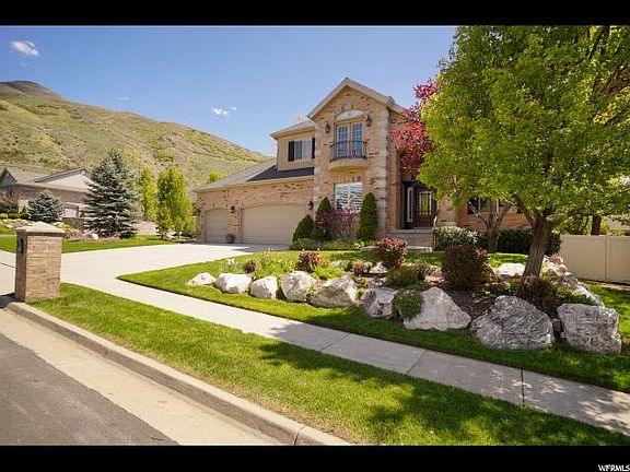 Prestigious Spring Hollow home in Fruit Heights is move in ready. The 2-story floor plan provides over 4,300 sq ft of finished living space. Beautiful finishes throughout include wainscoting, hard wood floors, ceramic tile, travertine, plantation shutters, vaulted ceilings, and more. The beautifully updated island kitchen allows for additional seating, plenty of cabinets and counter space. Enjoy many dining options: the large center island/snack bar, semi-formal dining, formal dining and dining out on the huge deck. The fireplace is perfect for those winter days and enjoy the coolness of the mountains or central air conditioning in the summer. The large Master Suite is complete with large walk in closet, gorgeous balcony and huge updated Master Bathroom. You will love your huge den with many built in bookshelves and french doors. The finished lower level contains a theater room including projector and built in screen for movie nights. This level also has a full bathroom plus 2 bedrooms. You will love the bright exercise room. Views are endless as you relax and entertain on your large deck and stone patio complete with custom fire-pit, professional landscaping, mature trees, and fenced in yard. The home also features 2 new HVAC units, 2 new hot water heaters, and radon mitigation system. Don't miss out on this gorgeous home, schedule your showing today!