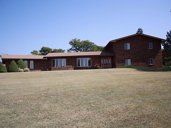 Acreages off the highway and close to town are few and far between. This jewel has it all! This brick split level ranch has four levels: main floor, garden level, 2nd floor, and basement. Sitting on 5.4 acres, this home has 5 bedrooms and 3 1/2 baths, a formal living and dining room, a sunken family/recreation room with fireplace, and an open kitchen/breakfast area. Plus, there's a partial basement. The over-sized 2 car garage is attached and has 12' foot doors.