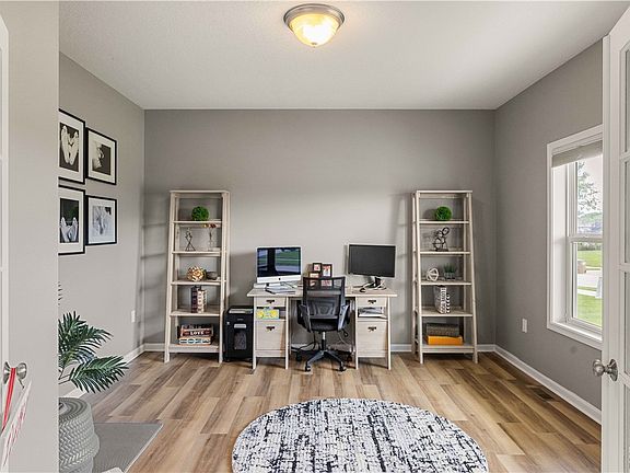 Welcome to this stunning, like-new two-story home in the highly sought-after Copper Creek Golf Course Community. Nestled on a private street in the heart of Pleasant Hill, this impeccably maintained property includes over 3,400 total sq ft. As you step inside from the covered front porch, you'll be greeted by an inviting entryway that flows seamlessly into a bright and airy living area and kitchen. With 9-foot ceilings and an abundance of natural light, the main level exudes warmth and openness. The spacious living room, featuring brand new LVP flooring, is perfect for any growing family. The gourmet kitchen is a chef's dream, complete with SS appliances, granite countertops, and a large pantry. The main level also includes a convenient half bath and a versatile office space with elegant French doors. Upstairs, you'll discover 4 generously sized bedrooms and a full bath. The expansive master suite is a true retreat, featuring dual walk-in closets and a luxurious master bath with a jetted tub, walk-in shower, and dual vanities. The finished basement adds over 1,000 sq ft of additional living space, including a living area, bedroom, and flex space that can serve as an office, workout room, or non-conforming 6th bedroom. The fully fenced backyard offers ample space for outdoor activities and relaxation, situated on nearly a third of an acre. Experience luxury living in this coveted neighborhood, just minutes away from downtown Des Moines!