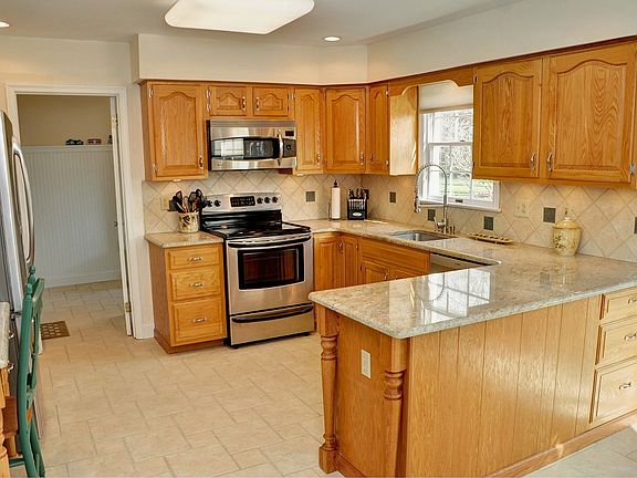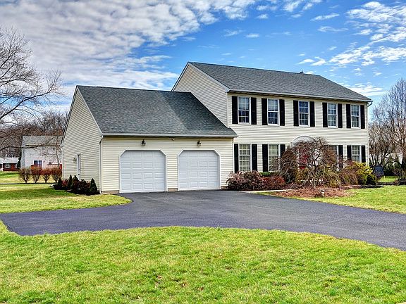 A PERFECT 10! Meticulously updated colonial situated on a large level lot in a beautiful and peaceful neighborhood in Hatfield. A classic 2-story center hall foyer welcomes you with shadow box millwork and a gleaming hardwood floor that extends into the adjacent dining room. The kitchen boasts abundant custom solid oak cabinetry, granite counter tops, ceramic tile floor and backsplash, stainless steel appliances, granite desk space, and a walk-in pantry. The adjoining breakfast area has a pretty bow window for terrific natural light and opens to the family room. The family room offers a brick fireplace, a large box window, and a door giving access to an expansive deck, paver patio, and peaceful back yard. Back inside, the living room features a wonderful wall of custom built cabinetry and display shelving with lighting. The living room and dining room both offer crown moulding accents. A very spacious mudroom with pretty wainscoting and ceramic tile flooring holds the laundry, a built-in sink, cabinets, coat closet, and access to the garage and back yard. The updated powder room with a pedestal sink completes the main level of the home. Upstairs, you'll find a spacious master bedroom with TWO 12x10 walk-in closets and a master bath with double vanity, soaking tub, separate shower, and ceramic tile floor. Three other nicely sized bedrooms and an updated hall bath complete the second level. Need more living space? The finished basement provides an additional 455 sq feet with two adjacent recreation areas with a half wall and recessed lights. The basement also has two large unfinished storage rooms. An oversized 2-car garage (you can fit 3 cars in it) is great for additional storage or for the handy home owner who needs a shop area. Aside from the many cosmetic updates, this home also features a new roof (2017), new hot water heater (2017), and newer HVAC system (2005). Warm, stunning neutral d~cor throughout this lovingly cared for home. A MUST SEE!