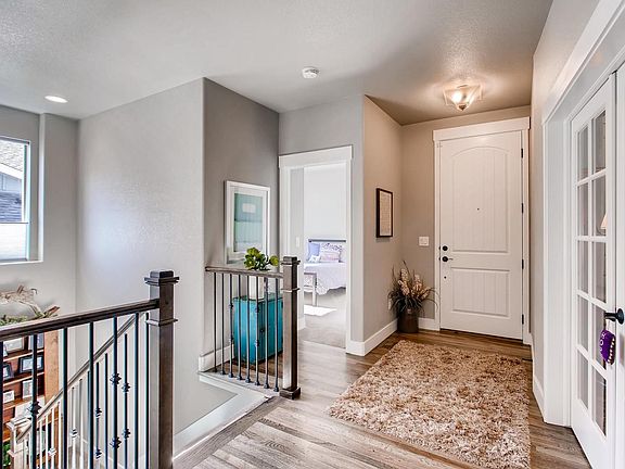 Maintenance free living at its best! San Isabel model has it all. Lower level walkout and backs to a natural setting treed area that is designated a "no build" area...fully landscaped and cared for. Enter thru the covered front porch and 8ft door to a hickory hardwood flooring that flows into a peaceful reading room or office w French doors...to your right a BR with its own full bath. There is also a powder room. Ahead you will be greeted with a great room and kitchen that is beautiful and packed full of upgrades: heat and glow FP, more hardwood, ceiling fan, & lots of windows! Custom blinds throughout! Kitchen boasts granite, Kitchen Aid appliances, double ovens five burner prof gas range, 42 in soft close hickory cabinets, under cabinet lighting, large pantry w/wood shelves, oversized black kitchen sink, large eating area and walk out to oversized covered deck! Laundry room is full of cabinets & large utility sink! Main level master opens to deck & has beautiful quartz & tiled bath w/double vanity & oversized shower...large walk in closet! The basement has 2 BRs w/bath suites, a wonderful rec room, a 2nd gas fireplace...tile & granite wet bar, lots of cabinets, upgraded carpet & pad...walkout to oversized covered patio and peaceful surroundings of swaying pines, and beautiful birds to watch! Walk to fox run park, hiking and biking trails..home warranted by builder! Come discover Legends @ Sanctuary Pointe paired patio homes, and enjoy the journey...