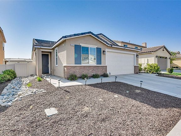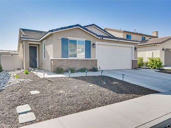 This Beautiful home is 3 bedrooms and 2 baths and sits on a 5,227 sqft lot with amazing views of the nearby mountains. This 1,764 sqft 1 story Beaumont home was built in 2016 and features an oversized, tandem 2 car garage in the Sundance North community. This home is complete with a large grassy backyard with an unobstructed view of the mountains! When you enter the home, you are met with a hallway that leads to an open kitchen and living room but also branches off to 2 of the bedrooms and a bathroom. The kitchen features recessed lighting, and island. The kitchen has granite countertops, built-in microwave, 4 burner stove with warmer, dishwasher, large counter eating area, and plenty of cabinets for storage space. Just behind the kitchen and living room, you will find the master bedroom. Down the entrance hallway, a laundry room can be found with shelf space for storage. The bedrooms spacious The master bedroom is large and has a connected bathroom area. The master bathroom contains a walk in shower and bathtub next to it, double sinks, and a private toilet area. Home is conveniently located near park and community is located near freeway, dining, shopping centers and more!