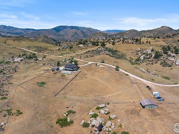 Your dream home awaits! This stunning 3 bedroom, 5 bath ranch style home is located in desirable Bonner Peak Ranch. It sits on 40 acres, with absolutely breathtaking views! Home was completely remodeled from floor to ceiling in 2011, with contemporary updates that include slate tile flooring, massive granite kitchen island, crushed glass linear fireplace, surround sound, Savant Audio/Video System and TV's included, electric blinds, skylights, wine cooler, high end stainless steel appliances, and incredible 12ft glass concertina doors that opens the space even more to the magnificent views. Watch the sunrise on the back deck, or enjoy dinner with your built-in propane grill. Main level master suite with barn door entrance, walk-in closet, separate deck space and wonderful natural lighting. Master en suite includes a luxurious freestanding bathtub, elegant finishes, double sinks, and a beautifully tiled and modern open shower. Main floor office has a separate entrance, and plenty of space. Walk-out basement features additional living space, laundry room, fantastic storage, and two additional bedrooms, each with their own bathroom! Oversized 2 car attached garage with storage room, as well as a heated detached 2 car garage boasting it's own office and storage room. Hot water heaters and pressure tank only a couple of years old, roof and solar less than 5 years old, radon mitigation system, two separate thermostats, central vac system, laundry chute, dumbwaiter, emergency generator, 3 propane tanks, and storage galore! Venture out to the 3 stall barn, with new automatic waterers, and gaze at the beautiful fenced pastures. Remarkable rock outcroppings throughout the property, showering even more beauty on this unique home. And very soon will only be 5 minutes from Glade Reservoir! Welcome home to your mountain paradise!