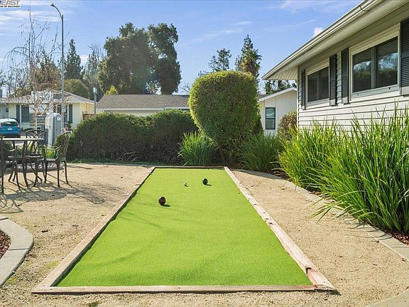 OUTSTANDING! Located in Fremont’s prestigious Mission San Jose neighborhood, in the top-rated Gomes Elementary School area, you will experience the perfect combination of modern elegance & thoughtful updates in this beautiful home. On a corner lot of the cul-de-sac, this home welcomes you with its stylish upgrades & comfortable design. And a Bocce Ball court too! WOW! Step inside to discover a step-down living room, updated kitchen with quartz countertops, sleek grey cabinetry, wine fridge, recessed lighting & decorator paint that ties the spaces together beautifully. Throughout, you’ll find newer luxury vinyl plank flooring, dual-pane windows for energy efficiency & remodeled bathrooms with quartz countertops for a cohesive modern look. French doors from the kitchen & dining area open to a meticulously landscaped backyard featuring a private patio & low maintenance yard. Adding to the home’s appeal is a detached studio with electricity, heating & AC unit, laminate flooring & recessed lighting, perfect as an office or playroom. The 2-car garage includes a dedicated workshop area. Solar panels enhance energy efficiency. Situated close to Lake Elizabeth, local parks, downtown Fremont & major commuter routes, this property offers the ultimate combination of convenience & charm!