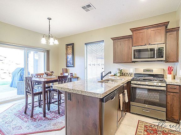 Backing BLM land with no neighbors and views of Cedar Mountain! Sitting in a newer neighborhood, this home is in a great location with quick access to grocery stores, restaurants, and schools. It has porcelain tile floors, granite countertops, 3-tone paint, and a covered back patio to enjoy the view of the mountains. Front and back yard landscaping has also been completed! It has been very well taken care of since it was built in 2017.