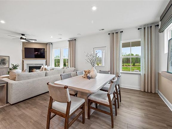 Move-in ready Hampton home, offering 5 bedrooms, 3 full baths, and 3,164 sq ft on Homesite #78 in the highly desirable Berkeley Mill community. This home has an estimated completion of February 2026 and features a bedroom and full bath on the main level, ideal for guests or multi-generational living, along with a formal dining room, perfect for entertaining. The open-concept main living area showcases a spacious kitchen overlooking the living room with charming gas fireplace, complete with light wood-stained cabinetry, quartz countertops, matte black hardware, and a designer herringbone backsplash. A sunroom extension off the breakfast area fills the home with natural light, while the living room is anchored by a gas-starter fireplace for cozy gatherings. Luxury LVP flooring flows throughout the main living areas (excluding the guest bedroom). The owner’s retreat features a tray ceiling, walk-in shower, and spacious walk-in closet. All secondary bedrooms are generously sized and include walk-in closets, offering exceptional storage and comfort. Berkeley Mill offers resort-style amenities including a swimming pool, cabana, fire pit, playground, and walking trails, all conveniently located near Cumming City Center and just 1 mile to GA-400. Limited-time promotions available with preferred lender. Don’t miss this Quick Move-In opportunity! Photos are of model representation. Pricing, promotions, and estimated completion dates subject to change without notice.