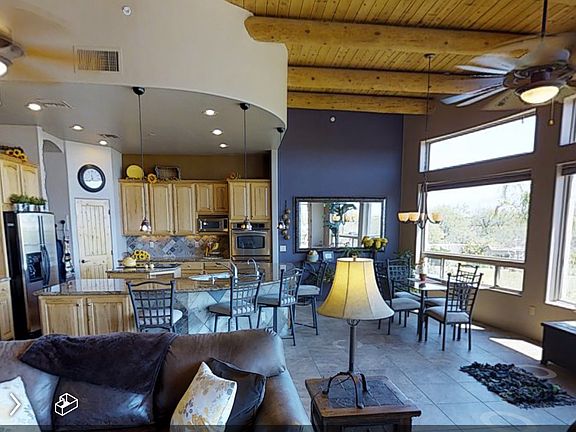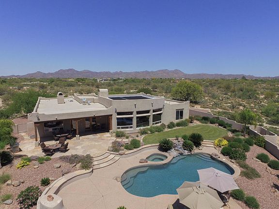 MAGNIFICENT home surrounded by breathtaking Mountain & Sunset views with a charming private gated courtyard entry boasts endless upgrades & specialty features. Soaring ceilings, French doors, upgraded lighting/ceiling fans, 2 electric fireplaces, wood beam ceiling in great room, built-in media shelves, & beautiful tile floor. Granite counters, breakfast bar, 2nd center island, tiled backsplash, SS appliances, pantry & wood cabinetry.Built-in cabinets in formal dining room.Stunning Catalina Mountain views from Den, Master Bedroom, & Great Room.Master BR features 3 large closets and a designer style bathroom.Ample storage, cabinets, & workspace in the 3 car garage. Premium sound system inside & out. 5 parcels share well. Be sure to see DRONE FOOTAGE! OWNED solar system is for pool only.