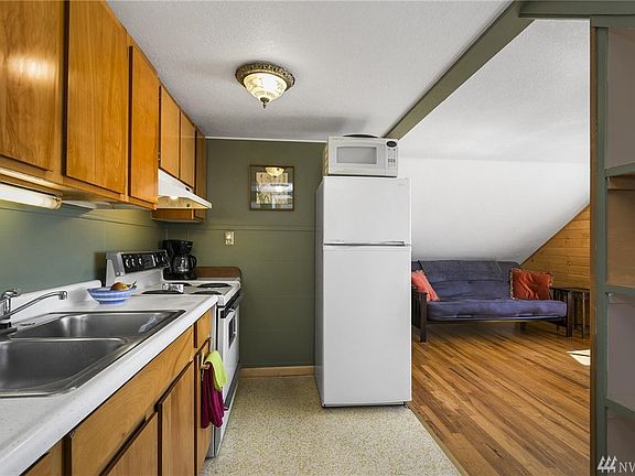 Perfect Port Townsend Bungalow with partial views of Port Townsend Bay and beyond to the Cascades and Mt. Rainier. One bedroom, one bathroom with full hookups. Kitchen, dining area and living room. Storage below with washer/dryer hookups. Uptown location allows quick access to all shops, restaurants, galleries, etc. Hardwood and heated tile flooring. Perfect getaway home. Walk to the Farmer's Market.