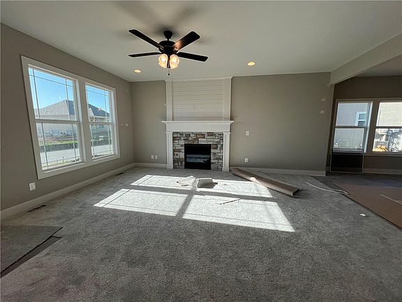 Now Available! New Construction Twin Villa/duplex with some maintenance provided. Rare 4 bedroom, 1.5-story plan with an unfinished basement. Lots of options for future expansion of finished sq. ft. Fabulous standard features, including trim feature wall, lighted vault, upgraded backsplash, and upgraded exterior elevations, a patio space, and sprinkler system, R-49 Attic insulation, Smart Thermostat, 8lb carpet pad, framed mirrors on the main level and in master bath, all baths include coordinating matte black faucets, garage door opener and keypad included, and it includes 2-inch faux-wood BLINDS! Taxes and SQFT are estimated. Lower your monthly expenses by using the amenities in the area. there is a Gym in the clubhouse, close commute to area parks, dog park, a playground, stores, and restaurants. Mowing is provided, winterization and activation of sprinkler system, snow removal, etc. (see agent for full details).