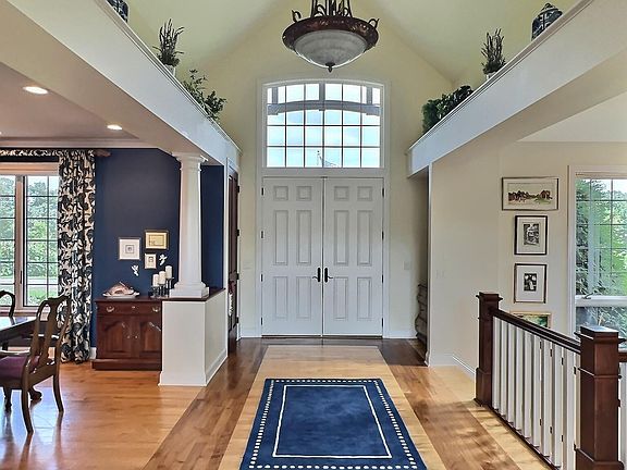 Step into your own private paradise with this spectacular custom built country home. Nestled into nearly 32 acres, this property has it all! Gently rolling land encapsulated with trees, gardens, and amazing landscape. Enter the home through the dynamic entryway, open to plenty of natural light through the many large windows throughout this open floor plan. Living room boasts vaulted ceilings that compliment 9-foot ceilings throughout, huge windows offering a picturesque view. Kitchen is full of custom cabinetry, granite countertops and built-in upgrades. Retreat to the primary bedroom suite, complete with private bath and walk in closets. This home has so much detail and well thought out features, including high efficiency geothermal heating and cooling. Lower level also exhibits 9-foot ceilings and walks out to the patio surrounded by meticulously maintained landscaping, flower gardens and pond. This one-of-a kind property has so much to offer and is sure to bring peace and joy!