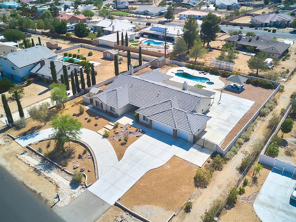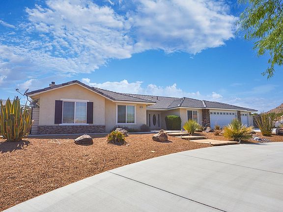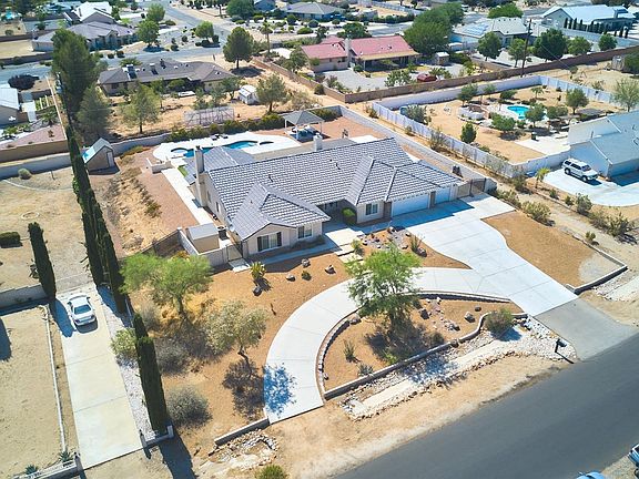 BACK ON THE MARKET at no fault of home. Entertainers Dream Home awaits your arrival! Located in a well desired area of Apple Valley this 2007 build Upper Desert Knolls POOL home boasts, 5 bedrooms, 2 of which are Master Suites, 3 bathrooms, a spacious 3,124sqft split-open floor plan, perched on just over 1/2acre +/-. 3 car garage, circular drive with additional side parking, gated RV access/parking, gorgeous landscape front and back with incredible views of the valley & breathtaking desert sunsets. Gourmet kitchen with large center island, granite counters, double ovens, abundance of cabinets, dining area with built-in desk/work area, large formal dining room with large picturesque windows overlooking the incredible backyard, beautiful custom arched doors/doorways throughout the home, wet bar, 2 fireplaces-located in the living room & master suite, shutters and window coverings, indoor laundry room, hard wired for cameras and alarm on all doors and windows, AMAZING backyard where you will find large covered patio, BBQ island equipped with a 5 burner Bull BBQ w/rotisserie, mini refrigerator, prep sink, 2 storage drawers, stereo system with speakers built-in, Basketball mini'' court, 15x15 Gazebo with electrical, 35' x 15' x 10' deep +/- Heated POOL & SPA with Pebble Tec, baja shelf/swim step with pole sleeve for an umbrella, and if you want to show off your skills, take a plunge off the diving board. Timing couldn't be better to enjoy the rest of your summer. Schedule a time to view your new home, there is so much more than meets the eye!