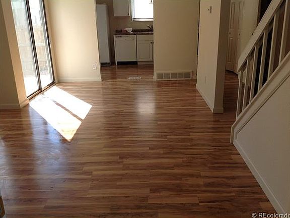 Nice 3b/2b townhome in a desirable location, Cherry Creek Schools, all new Laminate floors and carpet, new kitchen cabinets, laundry hookup in upper floor, one attached car garage with 2 other spaces on driveway, small backyard with access to garage and nice patio with access from the kitchen. HOA includes Water, Exterior Maintenance w/o Roof, Grounds Maintenance, Sewer, Snow Removal and Trash Removal.