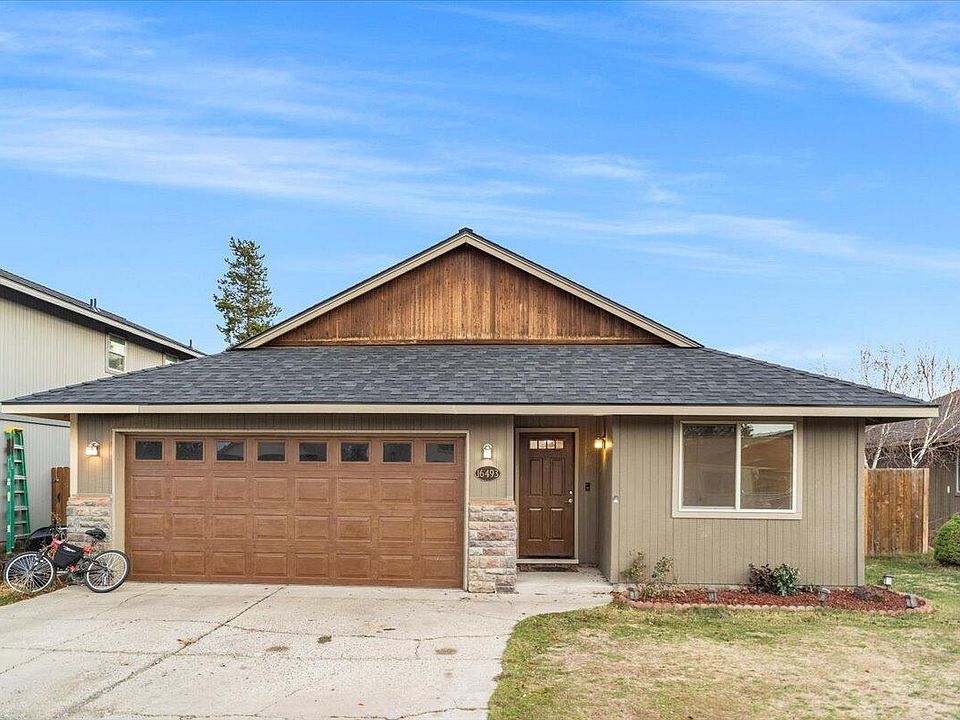 This 3 bedroom, 2 bath home is located in a great and quiet neighborhood in Lapine. The house features an open floor plan with vaulted ceilings, creating a spacious and airy atmosphere. The kitchen is equipped with an island and a new dishwasher, making meal preparation and clean-up a breeze. The master suite is generously sized and includes a walk-in closet, providing ample storage space. All bedrooms have been upgraded with new flooring, adding a fresh and modern touch to the home. Additionally, a new roof has been installed, ensuring the property is well-maintained and protected. Outside, you'll find a storage shed for all your extra belongings, as well as gravel paths that add charm and character to the yard. The yard itself is fenced in, providing privacy and security. A sprinkler system has also been installed. Overall, this home offers a comfortable and convenient living space in a peaceful Lapine neighborhood.