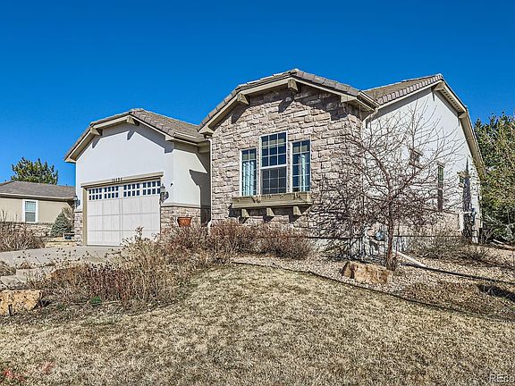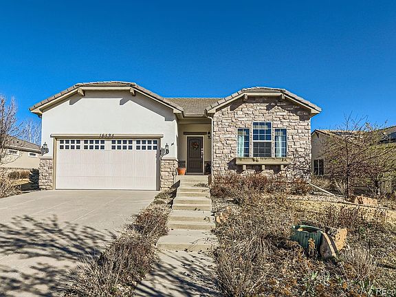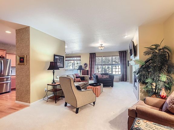 Come see this 1800 sq ft Pulte Copper Model home with 3 bedrooms, 2 bath close to the Aspen Lodge. This adorable home has been well loved and cared for on a quiet street with some back mountain views. A good sized yard with composite deck and lower flagstone patio, separate dining room, eat in kitchen and plenty of counter space for entertaining. French door, double drawer refrigerator, rollout drawers, pantry and eat in breakfast bar. LG front loader washer and dryer and separate folding shelf, and coat closet in the laundry room. The spacious Primary bedroom has a tray ceiling, bay window and custom paint throughout. 3/4 bath with linen closet and walk in closet. The 2nd and 3rd bedrooms are adjacent to a full bath and one of the bedrooms could be an office/craft or exercise room. 410 sq ft 2 car garage. The location of this home is minutes away walking distance to the fantastic Aspen Lodge, pickleball and tennis courts and multiple trails. Enjoy the 130+ clubs, indoor/outdoor pool and hot tubs, fitness center, indoor walking track and many exercise and dance classes. Anthem Ranch is the most sought after 55+ neighborhood. Close to DIA, Denver, Boulder, shopping, restaurants and more. Don’t miss this sweet home.