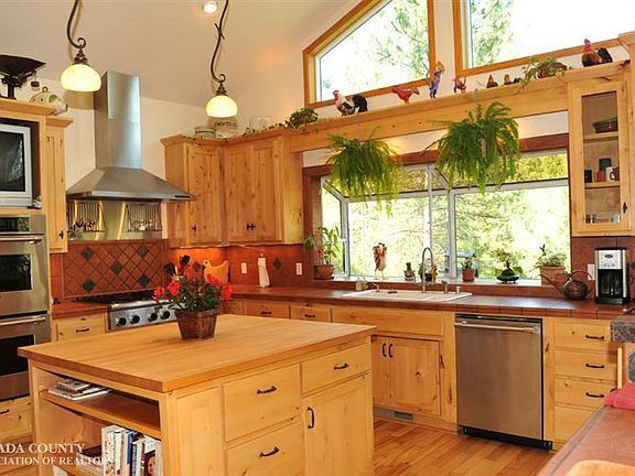 Top quality Country home nestled on 4.5 private acres with views out every window! Dramatic and bright open floor plan with day to day living on main floor including vaulted ceilings and windows to bring the outside in! Beautiful Three Rivers floor to ceiling fireplace, true gourmet kitchen with two islands and knotty alder cabinets. French doors opening out to large deck and access to multiple decks of 2300 s.f. for outdoor entertaining. Enterta inment center with surround sound into the kitchen and master suite. Master bath has separate granite sinks, walk in closet and walk in travertine glass shower and separate tub. Doug fir trimmed doors and windows, hardwood floors throughout living area & delightful open loft upstairs and separate family room and guest suite for teens or relatives. Beautiful in-ground swimming pool, fenced garden and vineyard, and 1920 sf separate garage with double doors work bench and loft. RV parking and 'birthday suit' private! Amazing property