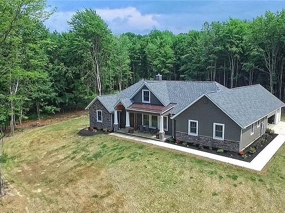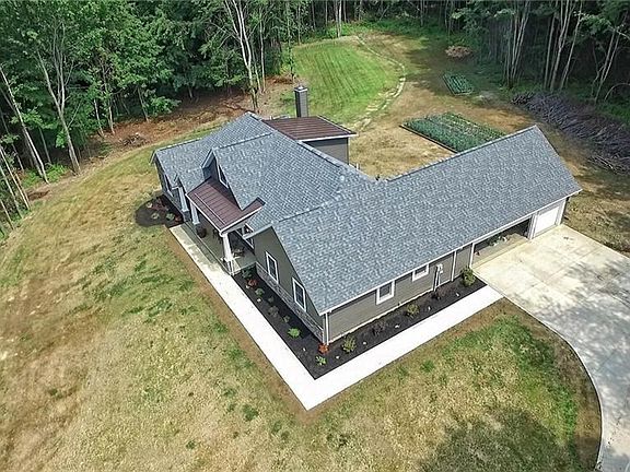 Located in the Heart of Wine Country is this newly Custom Built, in the Fall of 2017, Ranch/Cape Cod Home situated on 8.5 private acres. From the foundation to the roof, the home was built with quality in mind. The open concept living is accented with high density, scratch resistant Antique Strand Bamboo floors. The kitchen has Quartzite counter tops, ceramic floors, custom built cabinets with slow close doors/drawers, farm style stainless steel sink and single handle pull down commercial faucet. Never worry about storage, the kitchen has 2 walk in pantries! The master bath has his & her sinks with Granite counters & Saw cut Elm wood cabinets, ceramic tile standing shower, corner whirlpool tub & a walk in closet. Yes, the other 2 bedrooms have their own private full bathrooms as well w/granite counters & Hickory cabinets! Want more,the whole house has a central vac system throughout, including the basement/garage! The basement walls are high end superior walls, already dry walled & has a double door walk out. The basement is roughed in w/plumbing/gas connection for future canning kitchen. Life will be good with your raised vegetable garden beds, berry patch & the fruit tree orchard of peaches, plums & apples. Ask for complete list of design features of this home!