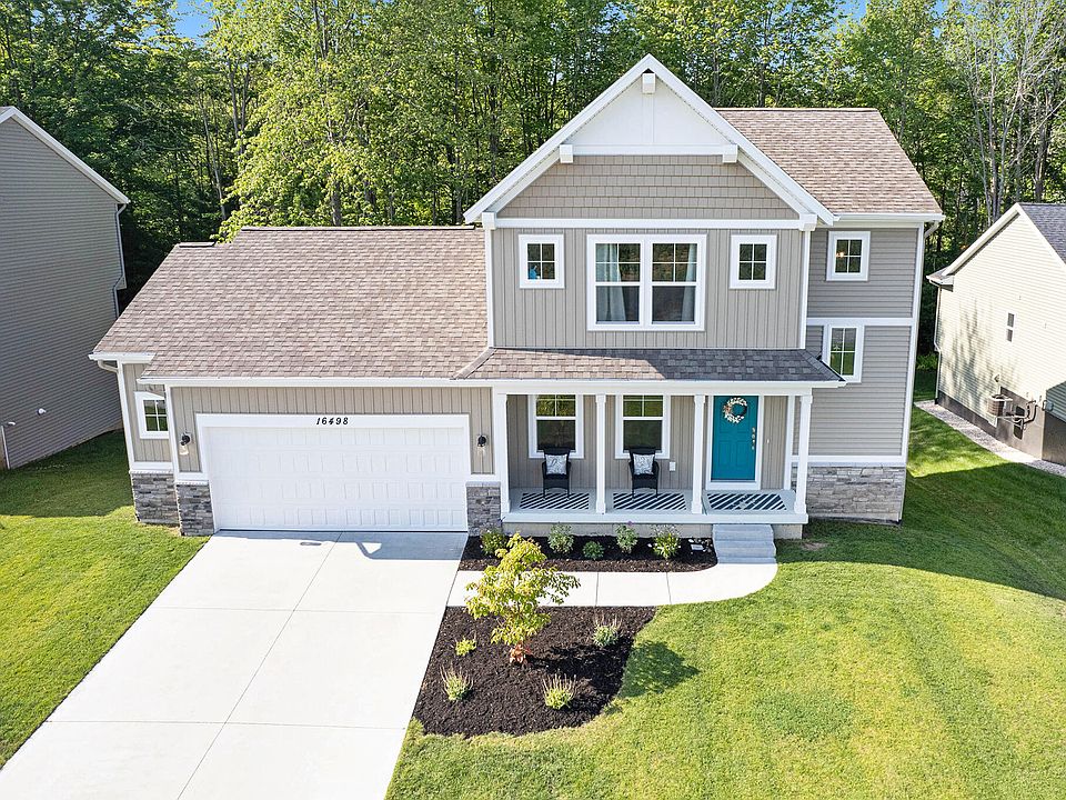 Welcome home to the 'Cambridge' design by Interra homes. Newly constructed in 2020, this home is move-in ready! This 2 story home with a fully finished daylight basement comfortably sits on an open .25 acre lot. Fully landscaped with in ground sprinkling and gutters added around the entire home. Enjoy the open concept main living area that leads to an extended deck ready to entertain or relax with the private wooded setting that backs the property. Granite island and countertops with Amana appliances flow to formal dining, large pantry and living space. On the second level you will find a large master bedroom with ensuite and master closet. A Jack and Jill bath adjoins the additional two bedrooms. In the lower level you will find an open space and under the deck view of your back yard.