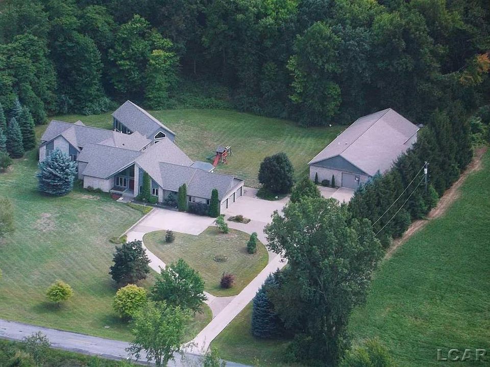 LUXURY owner built home 5 bedroom 3 bath 5750 square foot estate situated on a 5 acre wooded lot PLUS 5000 square foot Trane heated workshop. Insulated interior walls. Pella windows & French doors throughout. Kitchen with granite counter tops and solid white oak cabinets and trim. Italian travertine marble in the Grand Foyer. Master suite with a cultured marble shower and JACUZZI whirlpool tub with a spacious walk-in closet. 2004 addition has radiant floor heat with a high efficiency stainless steel boiler installed at $25,000. 5 separate zones, thermostats with a full bath Mr. Steam, rain heads and timed vents for the blower. Executive office or Den with solid oak walls, ceiling, doors and built in shelves tongue & groove. Theater room with noise absorbing panels and built in BOSE life style system, smart lighting and on air TV antenna. Heated recreation room with knotty Cedar. Great for family activities. Enclosed porch with jalousie windows. Mature apple and fruit trees.
