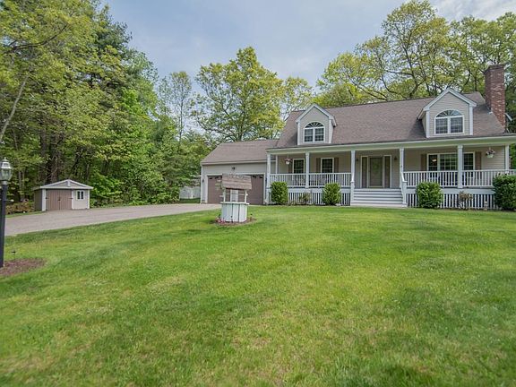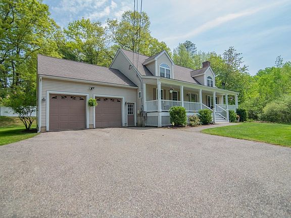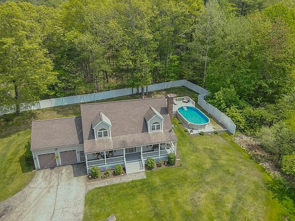 Beautiful well maintained Cape-Cod home located at 164A S. Main Street, Newton, NH. This inviting home with a covered farmers porch consists of 3 bedrooms (2 upstairs & one on 1st flr) and 2.5 baths, 2 car garage & sits on 2.17 acres. Spacious eat-in-kitchen updated granite countertops & under cabinet lighting. Kitchen island for eating, stainless steel appliances & tile flooring. Walk into an elegant dining room for entertaining with wainscoting & hardwood flooring. Large family room with hardwood flooring & wood burning fireplace with custom copper glass door. Living room perfect relaxing or reading. 1/2 bath 1st floor with laundry hook ups. The french doors in the kitchen leads to a lovely deck (16'x20') ideal for morning coffee or evening barbecues overlooking backyard where there's an 15'x30' above ground pool with attached 16x20 deck, hot tub and a 17'x14' patio, shed & vinyl fencing. Two bedrooms upstairs Master bedroom with master bath and another good-sized bedroom and a full bath. Basement is finished with separate utility room with shelving for storage. Close to restaurants, shopping and major hwys. *Showings 6/11/24 @ 4pm-5pm. Please contact via text*