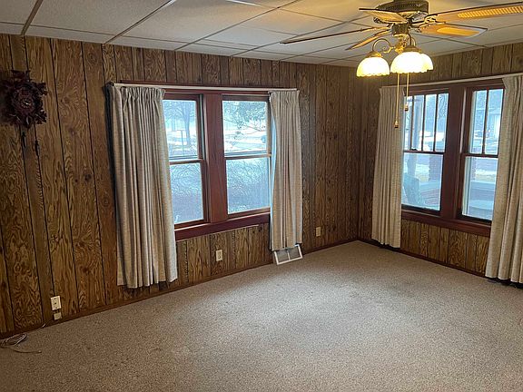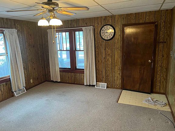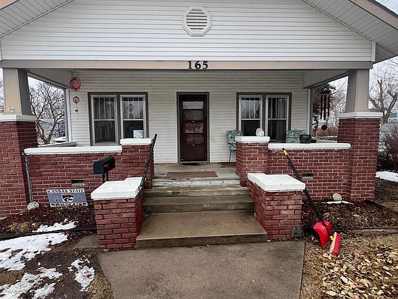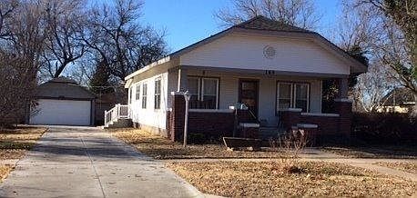 Very cute 2 bedroom, 1 bath home in Hoisington. It is neat and clean, with a great front porch and nice sized living room and kitchen. There is a partial basement for storage and can be used as a weather shelter. Also, included is a detached 2 car garage with a large workshop attached to the back of it..