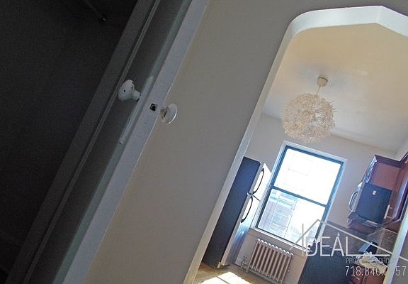 This unique apartment has been wonderfully preserved by a live-in super. These super clean walls frame perfect hardwood flooring. Charming detailing such as a built-in book case, paned glass interior door, skylighted bathroom are unusual. The bathroom is clean original porcelain. The building is a located behind a street facing sister-unit and is cushioned from the urban environment by an interior court yard. The appliances are stainless and very new, full-size fridge and range as well as a high-end kitchen sink. Fourth floor location provides amazing light, and views of Manhattan, Lower Hudson Bay, and Verazzano Narrows Bridge. Classic New York Style. Killer Price.