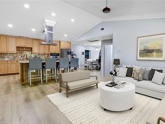 Positioned at the end of a quiet cul-de-sac in sunny Naples, this 4-bedroom, 3-bathroom gem offers the perfect blend of indoor comfort, outdoor living as a high potential property. From the moment you arrive, you’ll appreciate the oversized driveway—perfect for hosting or accommodating multiple vehicles, impact windows—and the fully fenced yard & mature fruit trees provide both privacy and room to roam. Inside, the open-concept living space is designed for comfort and flow, with a spacious kitchen offering an oversized island + stainless steel appliances, BRAND NEW A/C (July-2025) three full bathrooms, and 4 generous bedrooms that make family living, working from home or vacation renting a breeze. Step outside to enjoy a screened gazebo and elevated deck—the perfect setup to enjoy Florida’s famous sunsets. Whether you're grilling, entertaining, or simply enjoying the breeze, this space was made for memory-making. Located just 15 minutes from downtown Naples and 10 minutes from the vibrant waterfront scene at Celebration Park, this home offers quick access to fine dining, boutique shopping, live music, and more. Beach lovers will enjoy proximity to Naples Beach and Marco Island, while boaters will appreciate the nearby public ramps and Gulf access. Golf enthusiasts are just one mile from TPC Treviso Bay and 5 minutes to the renowned public courses at Lely Resort. For those who love food, culture, and the outdoors, the home is near Bayfront Naples, Tin City, the U.S. Open Pickleball Championship courts, and the Naples Botanical Garden. With no HOA restrictions, bring your boat or RV, create a custom vacation rental, or simply enjoy the freedom to live your way. This home combines location, lifestyle, and flexibility—making it an exceptional opportunity in the heart of Naples.