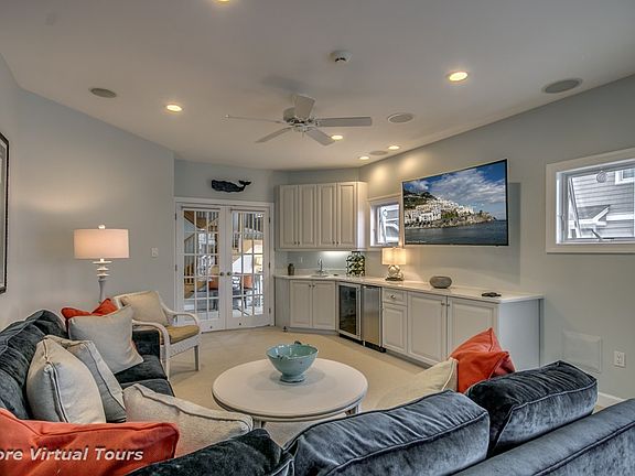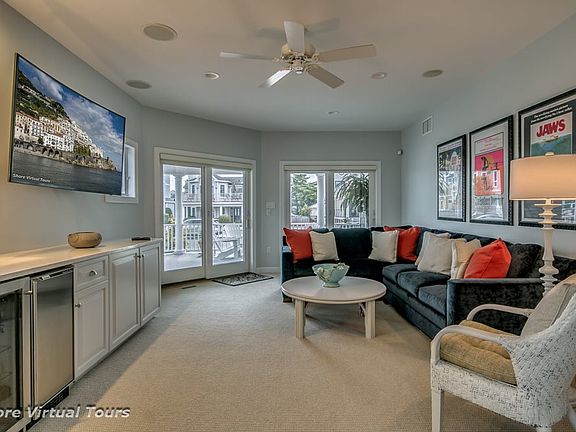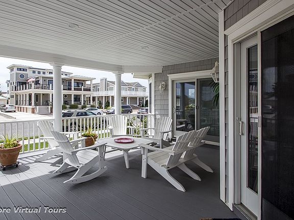 Beautiful beachblock home located in the South end of Avalon and situated just fourth house from one of the loveliest beaches on the island. You will appreciate the attention to detail in the recent updates to this home which include: fully refinished hardwood flooring and staircase, total remodel of the master bath, new carpet throughout the third floor, new furniture for the entire third floor, new furniture and area rugs for the living and dining rooms. Enjoy unobstructed ocean views from one of the many decks this home offers (Underground utilities on the beach block of 76th St.). The welcoming foyer leads into the family room which features a wet bar with wine fridge and ice maker, and opens onto the large covered front porch. The first floor offers a guest room with en-suite bath and sliding doors to the porch, a second bedroom that shares a hall bath and a laundry room with door leading to the generously sized garage. The second floor features a truly impressive great room with cathedral ceilings, with windows and tall sliders at every turn to catch the ocean views. The kitchen offers plenty of entertaining space with an oversized island and adjoining dining room. Step out onto the large deck located off of the great room and enjoy uninterrupted ocean views. A full hall bath and two more en-suite bedrooms are located on the second floor. Head to the third floor for a little privacy and relaxation. The third floor offers an office area overlooking the great room, a convenient laundry closet and the master retreat. The master bedroom features two walk-in closets, a generous size sitting area, master bath and private covered deck with fabulous ocean views.