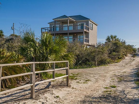 Looking for a relaxing beach retreat with great views at an affordable price? This is it! Fully furnished private home sits second tier site only steps from the sugar white soft sands of Cape San Blas. This home has never been rented but has the potential to do well in a rental program. Deeded beach access is only a short stroll away. No HOA, no HOA fees. Property is in an X flood zone, so lender will not require private flood insurance. First living level has two ensuite bedrooms with full baths, and a sitting area for watching tv. All three rooms have sliding glass doors leading out to a gulf view deck. Upper level has living dining area, kitchen, master bedroom and bath. Gorgeous gulf views from the large open deck.