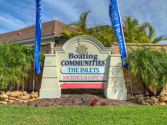 40' BOAT SLIP INCLUDED! Welcome to Manatee County's Premiere Boating Community, The Inlets at Riverdale. This lovely, meticulously maintained Key-West style home features 2 bedrooms, plus den and a multi-purpose office/craft room with Murphy bed and 2 1/2 baths. It is an open & bright great room plan with tile and crown moulding throughout the main living space. Chefs will love the well-appointed kitchen with stainless appliances including gas range, granite countertops, and beautiful wood cabinets. The Master retreat features two walk-in closets, plantation shutters, dual sinks, sliding door to the lanai and--best of all--shares a cozy, two-sided gas fireplace with the great room. The interior & exterior of this home have been freshly painted and features a relaxing front porch. The garage is set back and the porte-cochere (French for "carriage porch") provides additional covered parking. There is generous outdoor-living space with heated pool & spa (new pool pump and motor) New A/C in 2016. Slip which will accommodate up to a 40' boat in the fresh-water marina conveniently located just a block away. The slip includes water, electricity and a private parking space directly in front. Community amenities include tennis, playground, walking trails, kayak launch and a fishing pier. The fresh-water canal includes a unique lift system providing quick and easy access to the protected waters of the Manatee River.