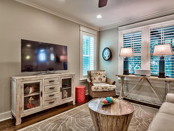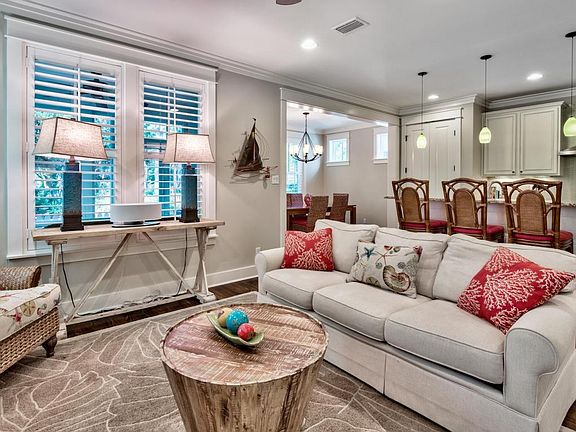 Here is the ideal beach house - furnished, south of 30A, includes all of your "must have" features! Beautiful location on Horseshoe Park in gated WaterSound West Beach, versatile open floorplan featuring Master-on-the-Main (laundry too!), garage, 2 separate living areas with hardwood floors, and ample storage. First floor welcomes you with V-Groove wood walls in the entry foyer, plantation shutters, stunning kitchen with granite island, under-cabinet lighting, and U-Line wine refrigerator. Relax on your screened porch facing the park and cook up a feast on the natural gas grill. Second floor offers a 2nd Master and Guest suite with built-in hallway bunks. Amenities include deeded beach access, pool/clubhouse, playground, trails, and fitness center. Call today for your private showing!
