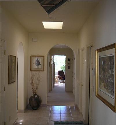 Elegantly simple. A honey for the money! In almost new condition with big view-t-full windows to the North, East and South. Views from Lizard head to Cathedral Rock. Spacious, well laid-out rooms, 12' high ceilings, skylights, arches, tile floors, Hunter Douglass window coverings, ceiling fans, stereo speakers, fireplace, surround sound in den, central vacuum and security systems, wired for outdoor jacuzzi, plumbed for gas to patio, insulated interior walls, and the biggest wrap around yard (approximately 670'+- patio space) you've ever seen in a townhouse. Smoke free and pet free all its life.