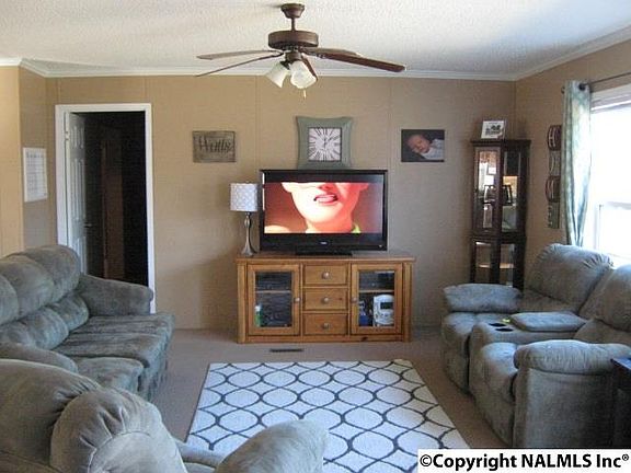 Gorgeous home on a beautiful secluded acre. Home features an open floor plan. The eatin kitchen features a gorgeous rock bar, oak cabinets and tile backspash. Tons of windows give a bright and sunny feel of home with natural light and allows you to have a beautiful view of outdoors. Beautiful formal dining room gives a great place to entertain. Enjoy the large private master with walk in closet, galmour tub, double sinks and stand up shower. Bedroom two and three has wonderful space and bedroom two has a walk in closet. The large hall bath is convenient to both bedrooms as well as the living room and kitchen. This home is on a permanent foundation and qualifies for an FHA loan.