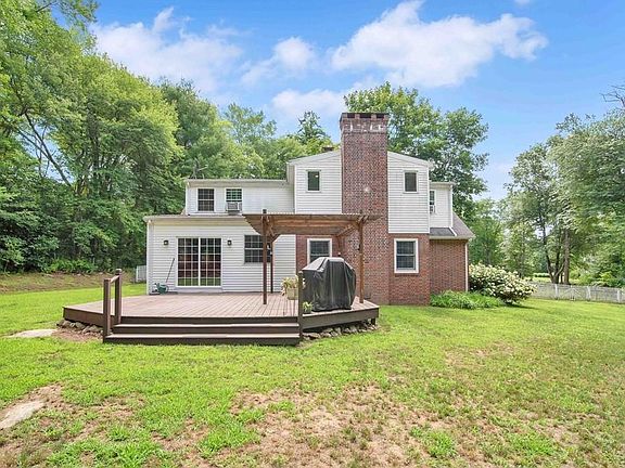 An Adorable Cape nestled away on 2 acres...This Lovely Cape shows pride of ownership throughout! You will enjoy the charm this home has to offer instantly upon entering... Wide open flr plan features a spacious kitchen w/ breakfast bar & all appliances, opening to dining rm w/ sliders to beautiful Ipe' deck w/ pergalo & fantastic 24 x 14 shed offering 2nd flr storage. Dining rm opens to living rm combo, wonderful rustic den area w/ brick hearth frplc tucked away & full bath. Formal living rm w/ wood stove insert and french doors leading to home office or could be used as additional sleeping quarters w/ built in's. All solid maple hardwood flooring in living rm, family rm, dining rm, home office! Double wide staircase leading to the second flr offering simplistic charm, double entry doors to this spacious master w/ dual closets. Two additional bdrms & beautifully remodeled full bth & laundry area.