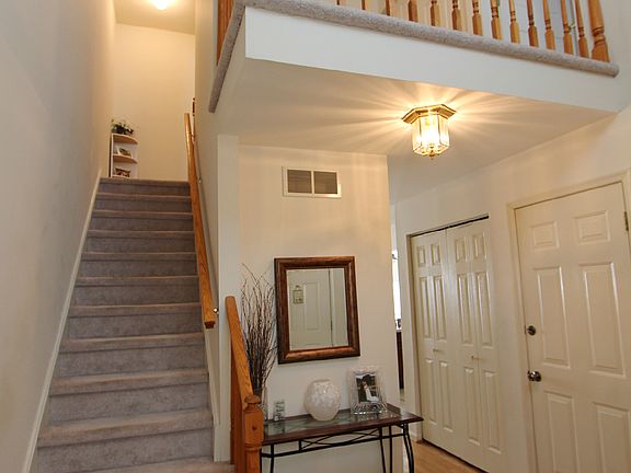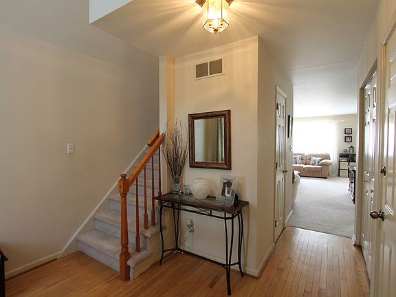 Simply tasteful, 3BR townhome in the desirable "Strawberry Fields" neighborhood. Enter from the front porch into the gorgeous two story foyer, boasting beautiful hard wood floors, neutral paint and decor. Spacious and open first floor with large living room, kitchen with stunning cherry cabinetry, island with barstools, side by side refrigerator, gas cooking and plenty of counter top and cabinet space. Sunlit dining room has sliders that lead to the newer enlarged deck with a nice sized fenced in yard and paver patio. Adorably decorated powder room finishes off the first floor. Upper level has a large open hallway, generous size master bedroom featuring double closets, crown molding and entry to the full bath. Two additional bedrooms and upper level laundry for your convenience. Full basement with plenty of storage and a one car garage, additional driveway parking and overflow lot as well. This home is meticulous from top to bottom! No Association Fees!! New hot water heater! 100% financing available!! Near parks, shopping and major routes.