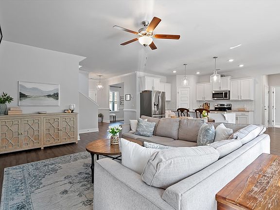Well-maintained, one-owner resale of Horizon's Carter plan. The Carter plan features a front flex room, which could be an office, dining, living, or music room, a main level guest suite with ensuite bath, a loft, plus 4 additional bedrooms, including the large master, and the laundry room upstairs. The open-concept kitchen is open to the dining room and great room, which features an electric fireplace with shiplap accents. Stainless steel appliances and an upgraded wood shelf pantry with wallpaper. Owners upgraded the outdoor living area adding a professionally installed paver patio with a firepit and sitting wall in the backyard. Low maintenance living with James Hardie board cement exterior siding, Low E energy efficient windows & spray foam rafters. Zoned irrigation included. No flood insurance required by FEMA. Remaining 2-10 structural warranty. Yates Astro Termite bond. Low yearly taxes equate to approximately 1% of your purchase price and include curbside trash & recycle pickup.