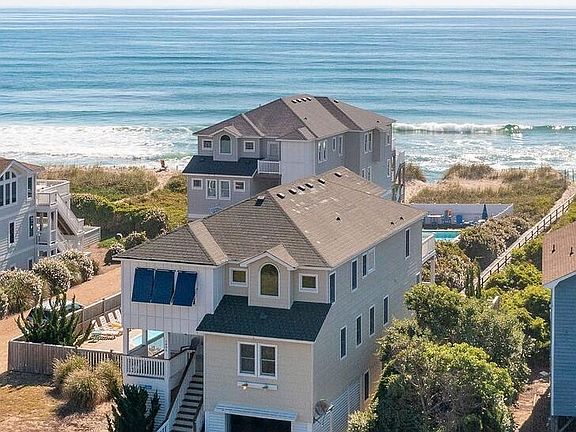 Here is the Duck Oceanfront home you have been WAITING for! Situated at the end of the street on a cul-de-sac with no thru traffic, this 8bedroom, 7.5 bath home with 6 Ensuite Bedrooms is THE ONE! The home has full on OCEAN VIEWS yet set back from the dunes withit's own private walkway, allowing you easy access back and forth to the beach so the property is much more protected than many in thearea. Tired of looking at oceanfront homes with views only from the top level? This home features additional OCEAN VIEWS FROM THEMID LEVEL where two of the ensuite bedrooms are situated with deck access! The upper level floor plan was well though out and isIDEAL with an open concept layout with the living, dining, and kitchen all on the ocean side allowing for a ton of ocean views from thecommon areas. There are TWO west facing Ensuite bedrooms on the top level as well as a powder room for guests. The kitchen isamazing with two refrigerators, two dishwashers, two oven/ranges, huge island bar with plenty of seating and a separate coffee/wine bararea with its own sink and wine cooler! Looking for all the bells and whistles? Well look no further, as this home features an ELEVATOR,game room with pool table and kitchenette with full size fridge and microwave and bath accessible to pool area, theatre room, and accessout to the private pool, hot tub, putting green, and gate to private walkway to the OCEAN. Make an appointment today to see this homebefore it's scooped up by a very lucky buyer! Over 223K in gross rental income booked for 2022 and almost 90K already booked for 2023!More pictures coming soon! Please Google '' Beach Music Twiddy Duck'' to access the rental site for this home for more details! AttentionInvestors: If 2023 calendar is opened up from March through the end of the year this home will produce over $250K plus in gross rentalincome!