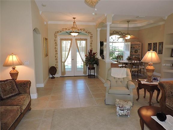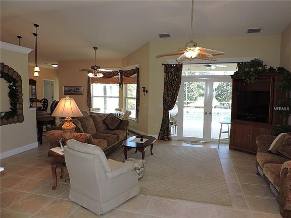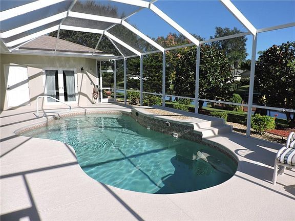 Gorgeous, Meticulously Maintained heated pool home on a sparling wide canal with dock for enjoying, relaxing and kayaking, Elegant split floor plan includes, grand living room, Dining room with tray ceiling, crown molding & plantation shutters. Stunning 4 sets of French doors, PGT windows, natural light throughout, designer fans and more. Spectacular spacious gourmet kitchen with all the expected bells and whistles, Wood cabinetry, solid surface counter tops, appliances, pantry, eating area overlooking the pool. Outside you will find professional tropical landscaping, paver driveway & walkway, Solar and electric heat for the pool, new pool pump 2016, free irrigation from the fresh water canal. Large double garage has its own work benches and storage areas. This elegant home is near 5 premium golf courses, beaches, restaurants, shopping, medical centers, banks and houses of worship. This very tropical home has only been slightly used by snow birds. Most furniture may be purchased on separate contract. Impressive home offers new owner Bragging Rights.
