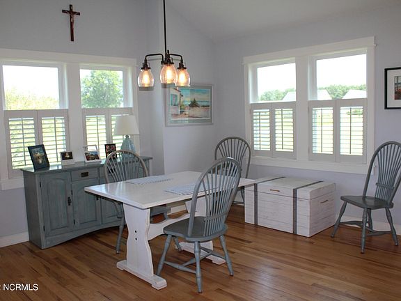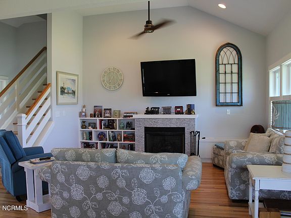 Like new home in water access Carolina Club golf course community. Community pool, clubhouse, tennis, marina. INCREDIBLE golf course views. Shows VERY WELL. 4 bedrooms, 2.5 baths. 2 car side loading garage. This home has a natural gas fireplace. You will love cooking in this gorgeous kitchen with granite counter tops, stainless appliances, instant hot spicket, double undermount sinks. pantry, lots of cabinets, breakfast bar and a natural gas range. Beautiful hardwood floors throughout. Nice bright great room. Plantation shutters, cellular shades. Spacious primary bedroom downstairs with spa like bath. Large glass and tiled shower with bench, walk in closet, double vanity. Second bedroom or office also on first floor. Laundry room. Upstairs are 2 more bedrooms and a full bath. Nice screened porch that leads out to large multi level deck . INCREDIBLE golf course views. This home will make you smile.